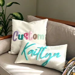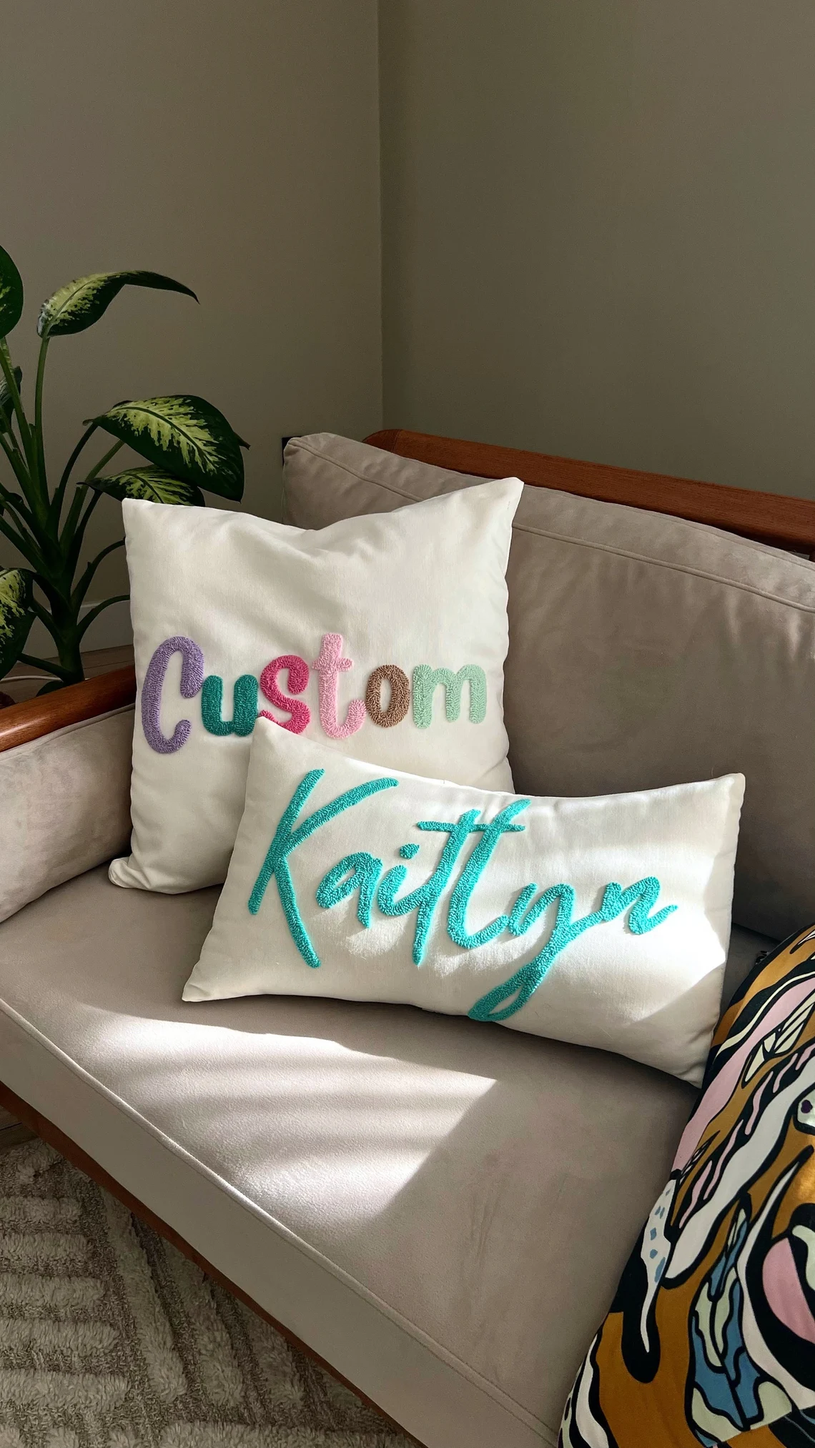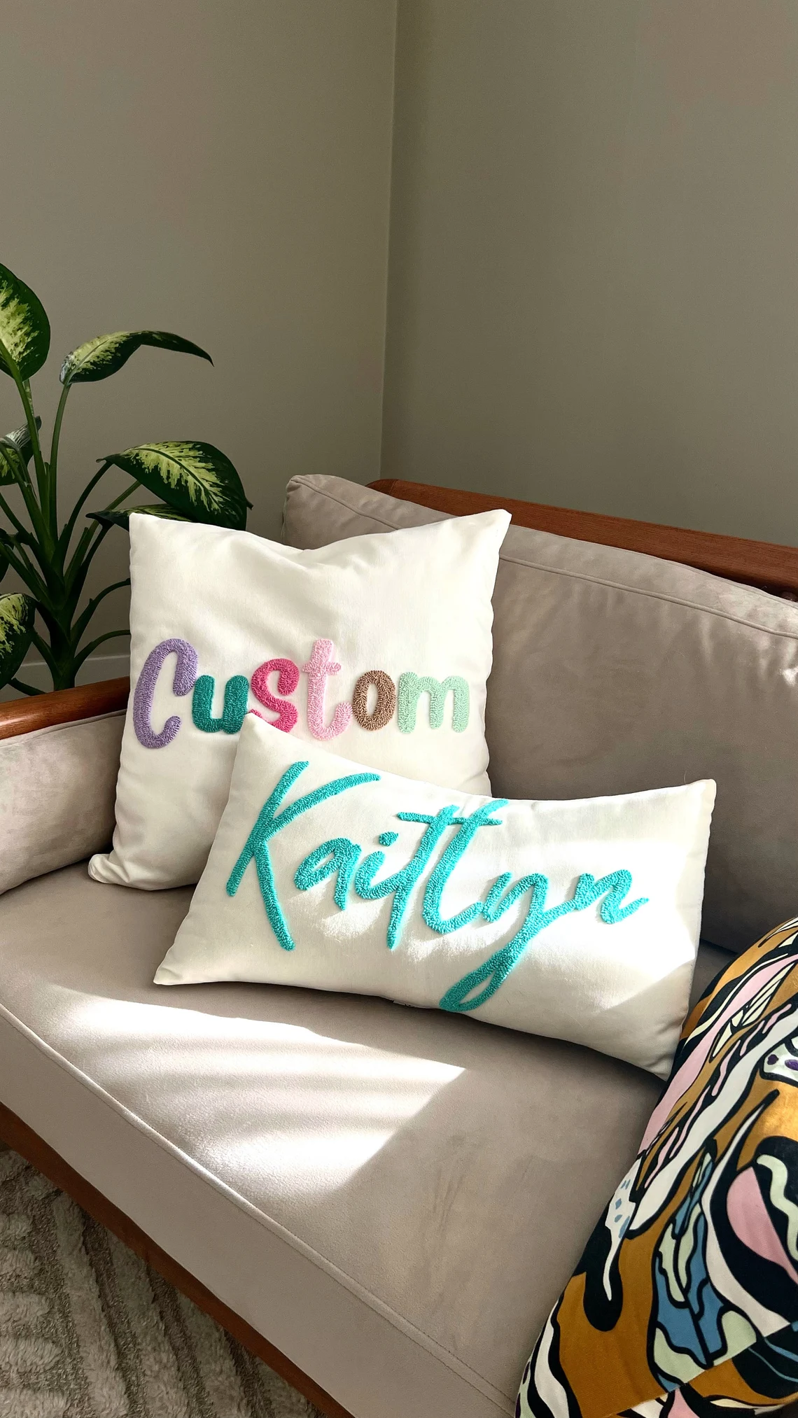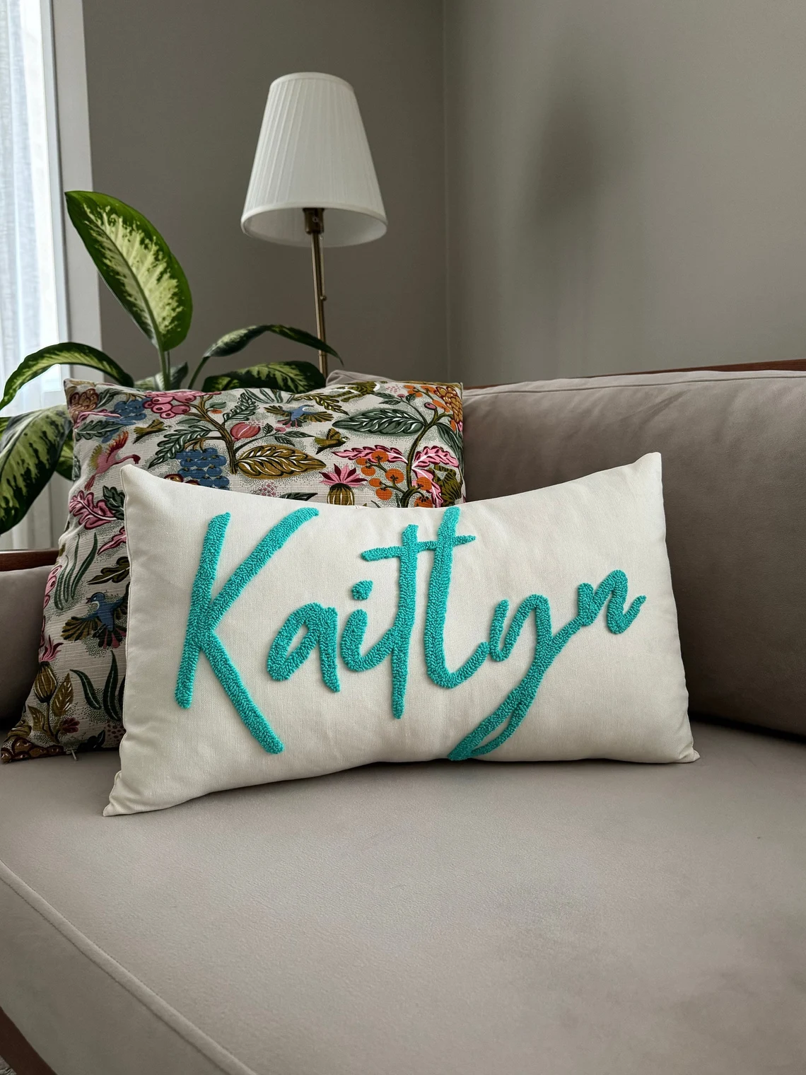 Custom Baby Name Pillow Cover, Punch Needle Nursery Pillow, Personalized Newborn Gift, Handmade Nursery Gift