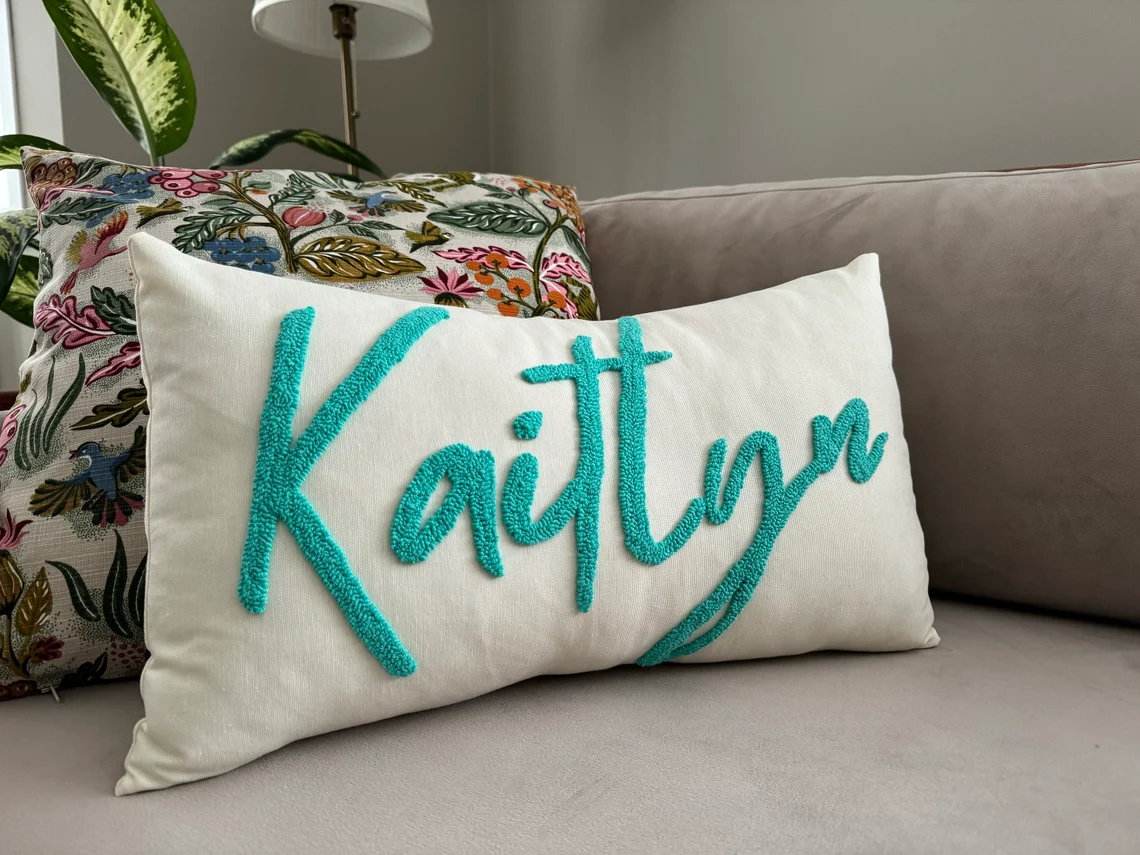 This hand tufted custom pillow makes the perfect gift for a newborn, baby, boyfriend, girlfriend, mom, dad… They’ll feel loved and you’ll be forever awesome for picking out such a beautiful gift.